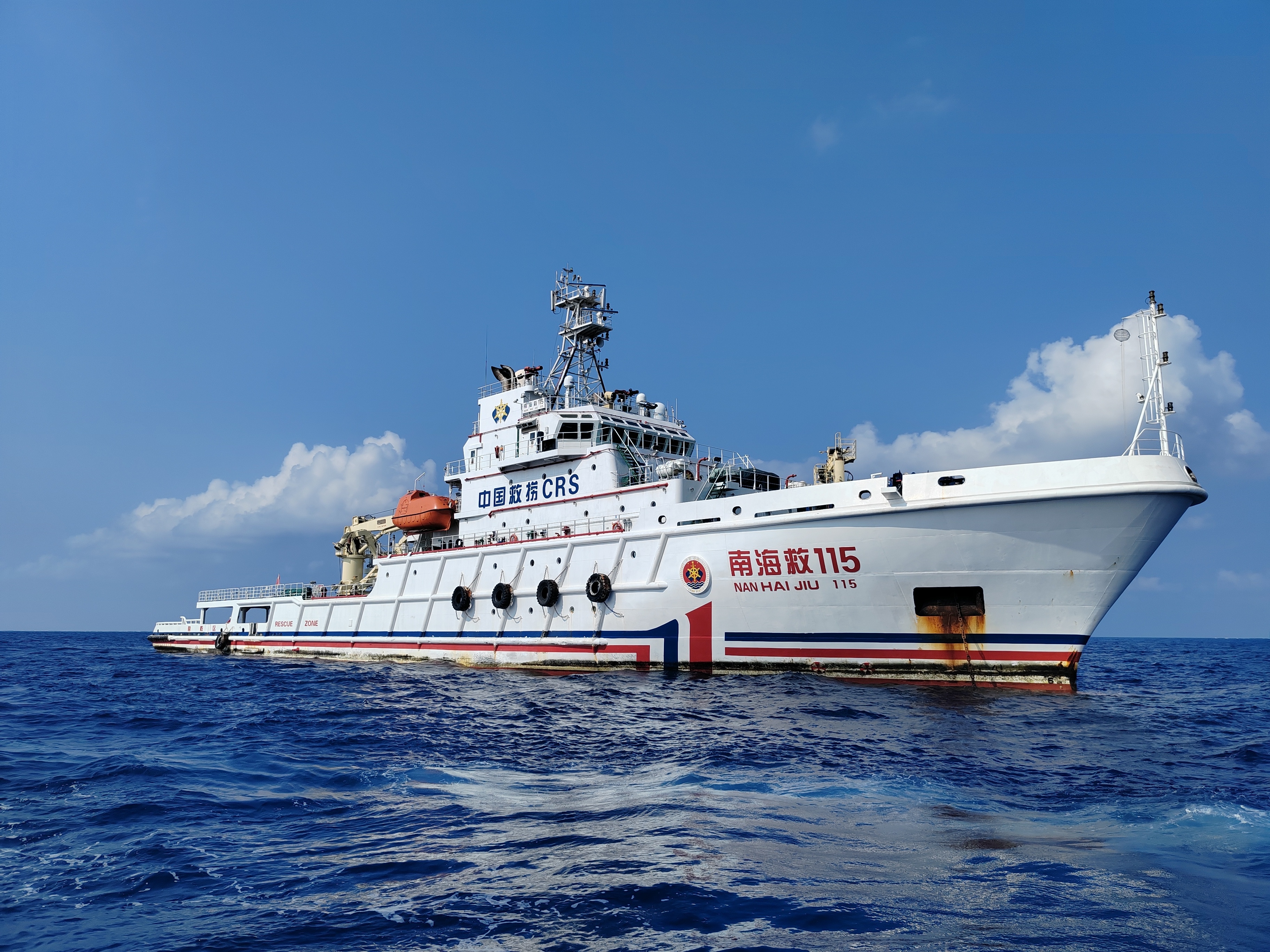 2018年7月27日,交通运输部南海救助局派遣“南海救115”轮进驻南沙岛礁值守,这是中国专业救助力量进驻南沙海域的第一次轮值。
