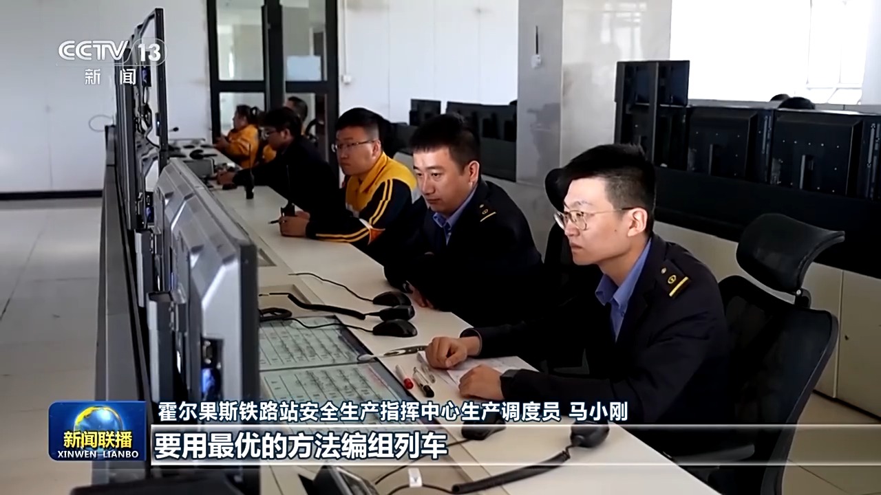 霍尔果斯铁路站安全生产指挥中心生产调度员 马小刚:总书记勉励大家,踊跃投身以高质量发展推进中国式现代化的火热实践。我们作为中欧班列出入境的一线调度人员,要用最优的方法编组列车,为保障国际供应链安全、促进亚欧贸易往来注入新动能。