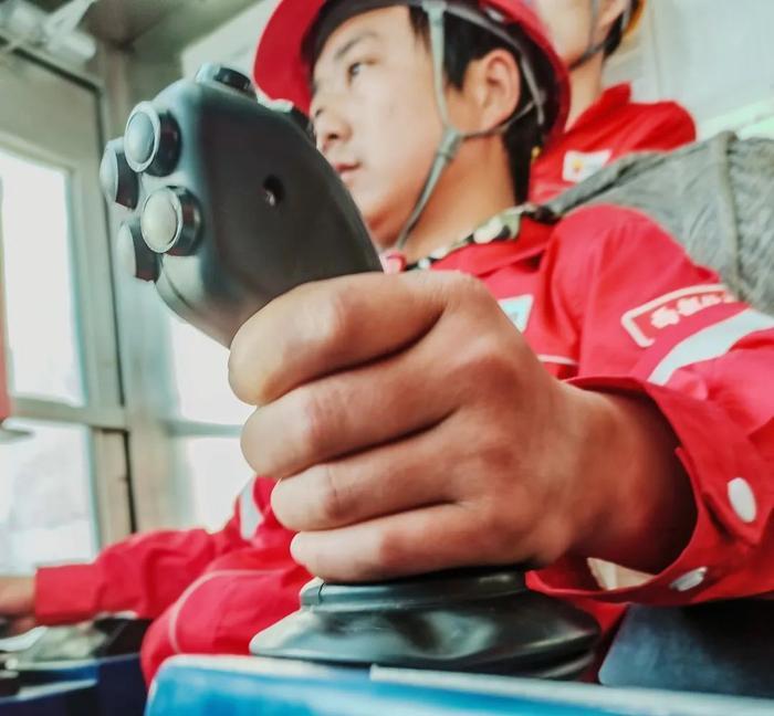 ▲这是一双司钻的手,也是一双打造“中国深度”的手。十年间,经这双手送入地下的钻杆达10500多根。中国石油全国首口万米科探井——深地塔科1井开钻以来,这双坚硬而充满力量的大手操作着全球首台12000米自动化钻机,稳稳地将1000余根钻杆送入井筒。