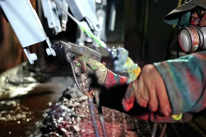 ▲国机集团中国一拖集团有限公司职工的这双手满是油漆,却能舞动出最美的色彩,挥舞起手中的喷枪,走笔龙蛇中,绘制出东方红拖拉机的“最美嫁衣”。