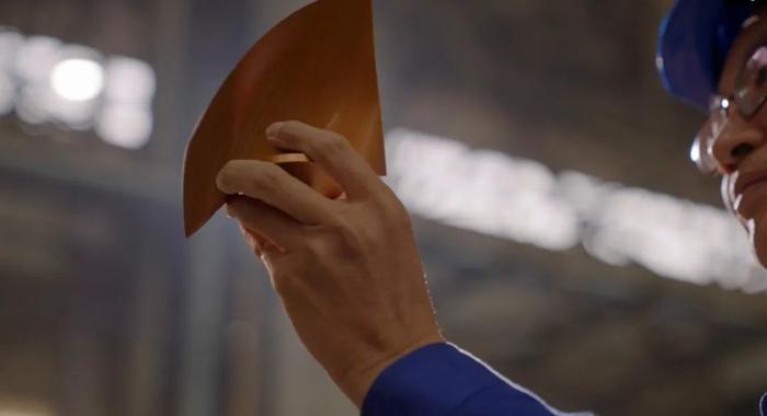 ▲这双短粗厚实的手,来自中国宝武马钢交材车轮车轴厂精加工技能大师沈飞。正是这双手,让他完成了一次次车轮精加工难题,在数百次的试验中实现了精度要求,加工出一件又一件车轮精品。