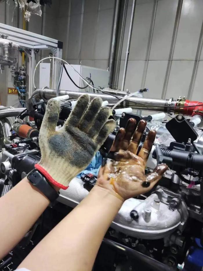 ▲这双满是油污的手来自中汽中心下属单位天津检验中心发动机试验室的工程师卢中轩,他专注于重型发动机的台架测试试验,为每一台发动机做好保养检查工作,五年来做到零事故发生,为保障发动机检测试验保驾护航。