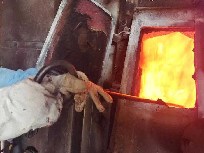 ▲这是中国五矿司炉工张海洋的手,他每两小时仔细检查一次两台152㎡焙烧炉炉膛。炉内物料的沸腾情况,通过钢钎传递到司炉工的手上,为焙烧炉长周期运行安全护航。
