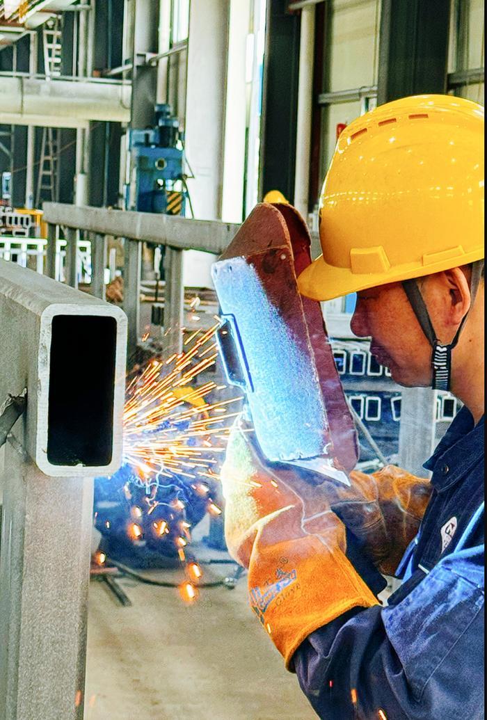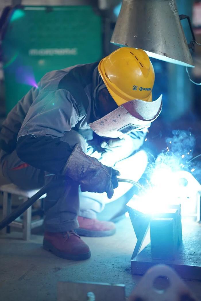 ▲这是中国节能所属中节能国祯水厂的一位女焊工,她的双手能烧得一手好菜,也能持面罩、举焊枪。靠着这双不起眼的手,她打造出了一件件合格的环保设备零部件,为水处理设备的使用运营提供保障。
