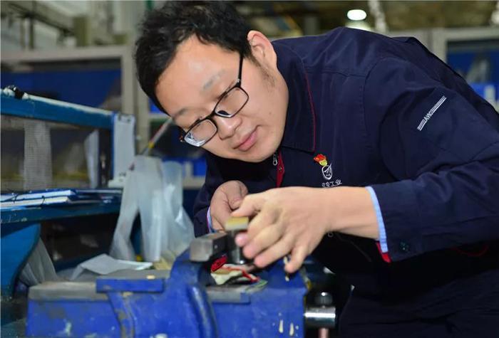 ▲只要操起锉刀,一双手稳、准、巧,一丝不抖、干净利落兵器工业集团首席技师张学海,潜心钻研钳工技术31年,从0.1毫米到0.01毫米再到0.001毫米,以他名字命名的“配合件精准装配法”,解决了装甲车辆关键部件成型模具160个刀齿精度0.001毫米、模具装配精度0.01毫米的技术难题,使他成为练就绝技绝活的“大国重器装配师”。