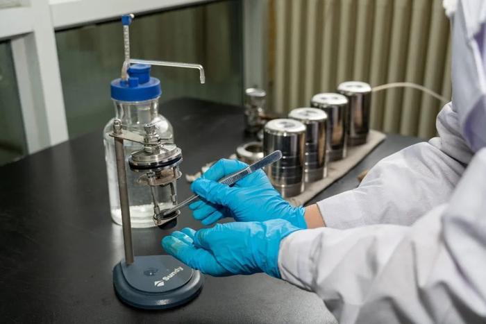 ▲这双稳健操作着高精度电子天平的手,是中国中煤能源研究院科研人员的得力助手,能使天平精确到百万分之一克。这双手与天平默契配合,是科研工作中不可或缺的一环,准确无误称量样品、记录微小变化,为实验数据的可靠性提供坚实保障。