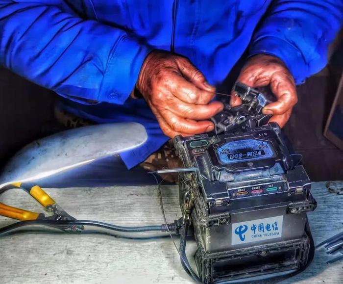 ▲这是中国移动装维人员的手,就是这双手,抚过乡镇里大街小巷的光纤,拉光纤入户、装网,为成百上千户家庭带来畅享宽带的快乐。