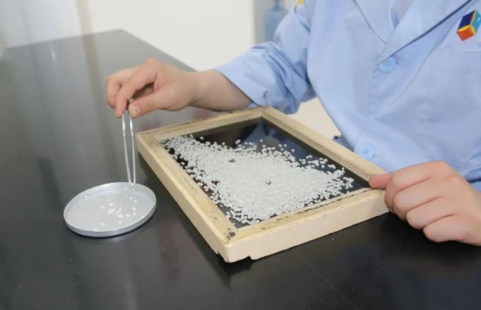 ▲这双手来自中粮集团粮谷的质量部检验员。一把镊子,一盒米样,每半小时检测一次,日复一日,他时刻践行“细致、客观、真实”的工作要求,守护国民餐桌安全。