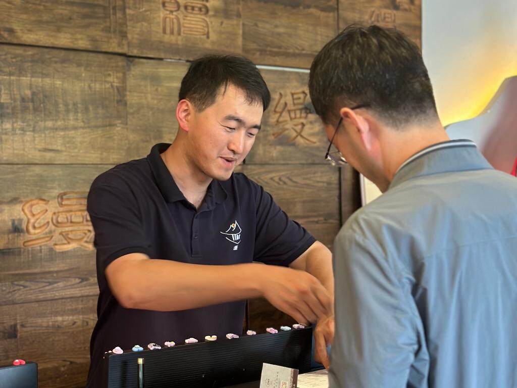 德清民宿管家颜传波正在服务旅客。(杨鑫艳 摄)