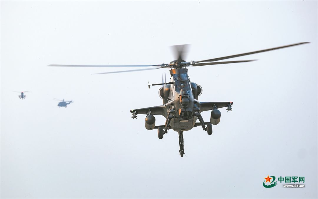 飞抵目标空域后,根据侦察分队先期标记的目标位置,武装直升机快速锁定目标。接到攻击指令,飞行员迅速构建攻击航线,交替进行跃升、俯冲、攻击等战术动作。完成模拟攻击后,编队随即改变战术队形,对攻击区域实施抵近侦察。
