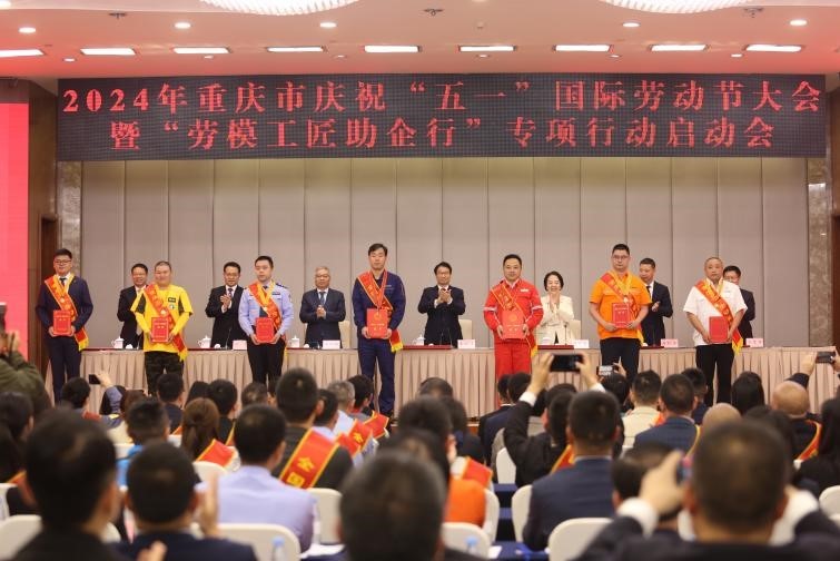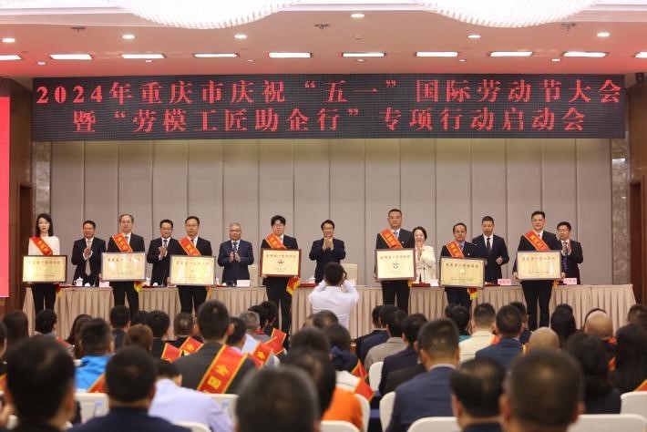 4月30日,2024年重庆市庆祝“五一”国际劳动节大会暨“劳模工匠助企行”专项行动启动会召开。会议表彰2024年全国和重庆市五一劳动奖状、五一劳动奖章和工人先锋号获奖人员;安排部署“劳模工匠助企行”专项行动,劳模和工匠人才创新工作室代表、企业代表现场签订合作协议书。