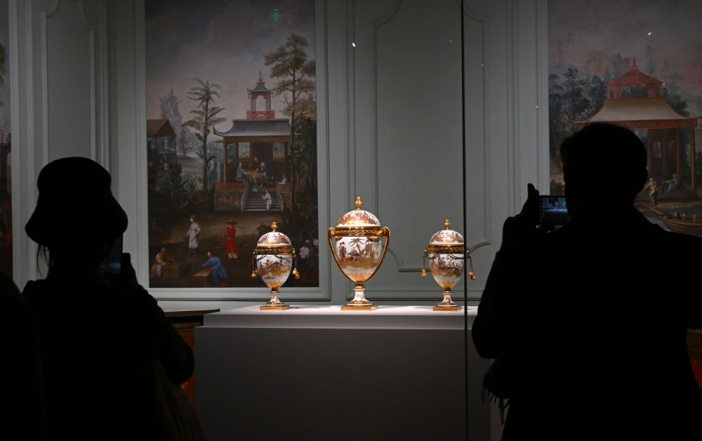 2024年4月1日,观众在北京故宫参观“紫禁城与凡尔赛宫——17、18世纪的中法交往”展览。新华社记者 金良快 摄