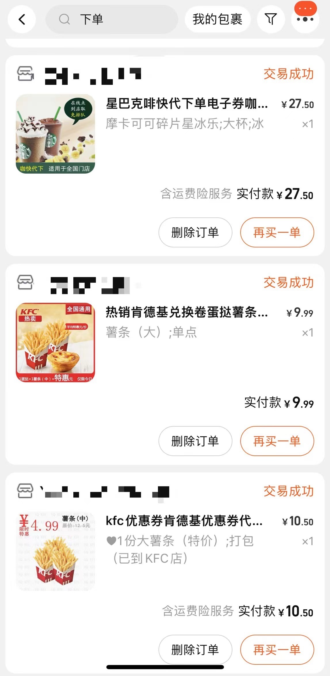 刘女士代下单记录