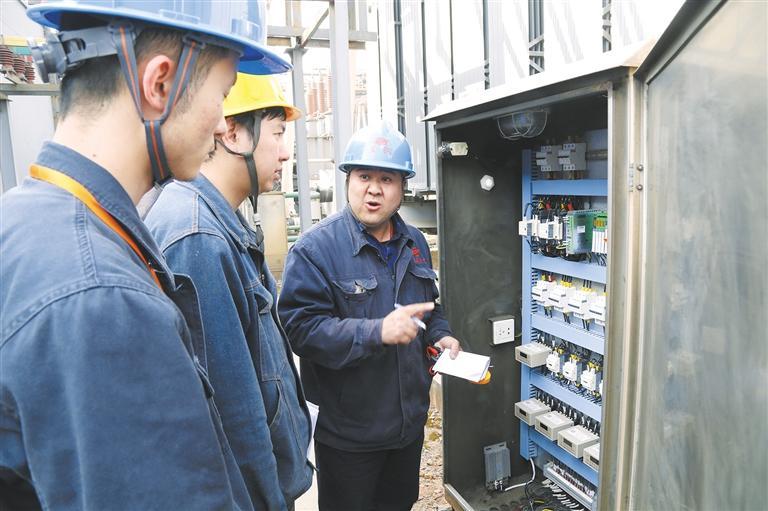 王世立为徒弟讲解设备维护的相关注意事项。