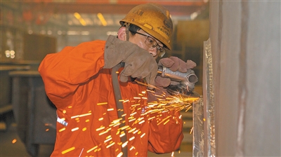 面对眼前的两块钢板,张明一手托起面罩,一手拿住焊枪,在绚丽的弧光下,开始在钢铁上“绣花”。放下焊枪,他道出自己多年的工作感悟:“我感觉,焊接的过程是一种享受,沉浸其中仿佛周围的世界都变得安静了,飞溅的焊花也特别有魔力。只要有足够的技巧和创意,焊工也可以成为艺术家。”
