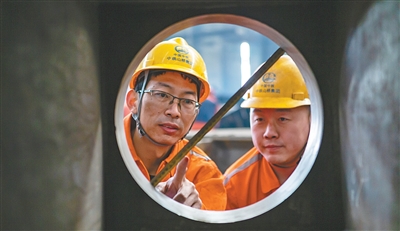 “任何本领都不是一天练成的,而是来自日积月累的辛苦付出。”张明回忆起刚参加工作时的情景,至今记忆犹新。当时作为学徒,他经常守在老师傅旁边,仔细观察一招一式,把焊条摆动的频率以及幅度都牢记于心,细心记录下焊接参数,用心揣摩钻研。在别人休息时,他找来废板材切割成各种形状,反复练习。眼睛晃花了,衣服湿透了,皮肤也被弧光烤得红肿,有时身上还会被铁水烧烫出血泡。随着手掌上的茧子慢慢厚起来,磨损更换的工装逐渐增多,张明成了同龄人中成长最快的一个。