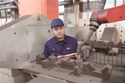 “通过改用机器手焊接后,以前一名焊工一天只能焊4个帽筒,现在机器人焊接工作效率提高了一倍,而且不用二次修补,焊缝质量明显提高,还能节省一名焊工。”刘洋介绍。