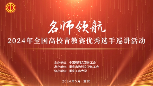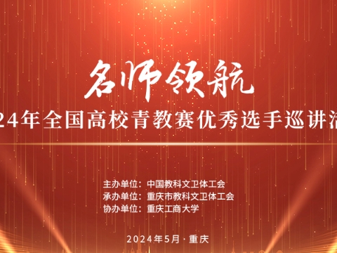 直播回顾丨“名师领航”2024年全国高校青教赛优秀选手巡讲活动 为贯彻落实党的二十大精神,大力弘扬劳模精神、劳动精神、工匠精神和教育家精神,发挥先进典型引领示范作用,助力高校教师队伍素质整体提升,服务教育强国建设,2024年5月8日14:30,“名师领航”2024年全国高校青教赛优秀选手巡讲活动在重庆工商大学南岸校区剧场举行。中工网首页同步直播。