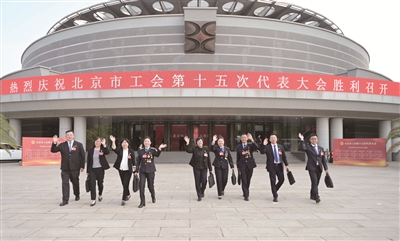 北京市工会第十五次代表大会闭幕,代表们意气风发走出会场。