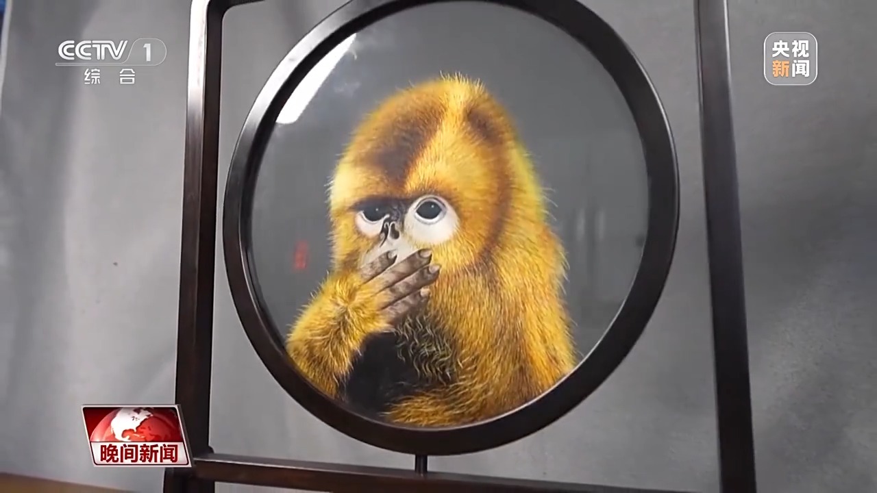 探索苏绣的新发展,江苏苏州的一代代绣娘们一直在为此努力着。这幅今年年初新出炉的双面三异绣作品,由两位绣工配合完成,同一张丝织底料,正面是白色的小狗,翻转过来,就变成了一只栩栩如生的金丝猴。
