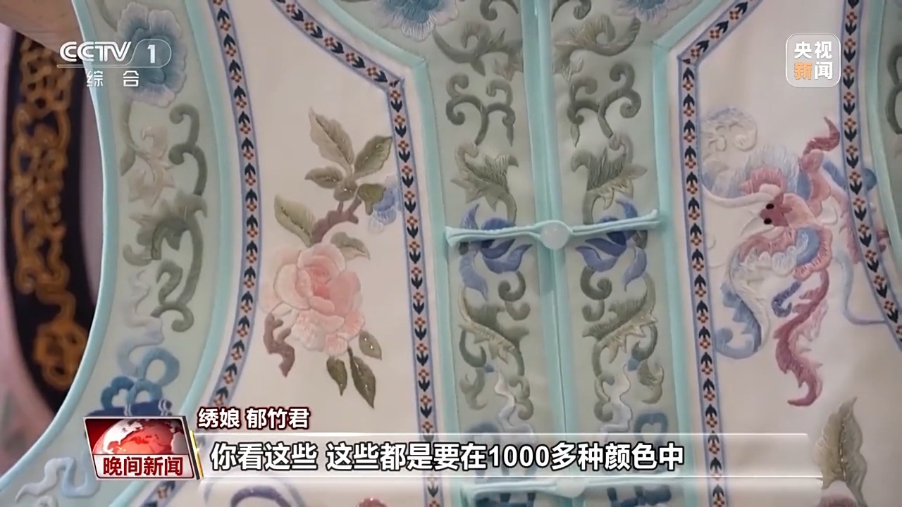 绣娘 郁竹君:苏绣的色线有1000多种色卡,怎么可以把它做有颜色的渐变,这些都是要在1000多种颜色中,我去把它一个个挑出来的,所以说这个难度非常高。