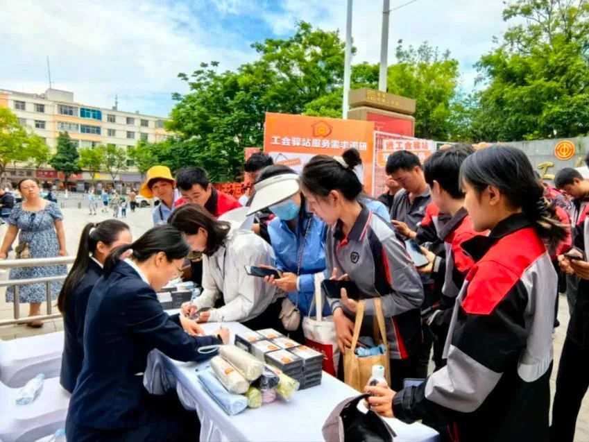 针对职工多样化需求,采取多种服务方式,提供N项服务内容。昆明市总工会充分整合社会资源和公益力量,在工人文化宫等地的工会驿站常态化开展“政策宣传”“法律咨询”“健康义诊”“爱心赠饮”“手机养护”“公益理发”等多个普惠服务;石林天外天公司免费为工会驿站捐赠24000瓶“致敬劳动者”主题文创矿泉水,供新就业形态劳动者免费领用;盘龙区总工会在五一期间,创新开展“劳模工匠进驿站”活动,邀请劳模工匠来到工会驿站,为新就业形态职工讲述奋斗故事,弘扬“三个精神”;呈贡区总工会在工会驿站开展“共享技能·焙享快乐”主题活动……昆明市各级工会因地制宜、以需定供,开展一系列丰富多彩的活动,采取不同的举措“花式”服务新就业形态劳动者。