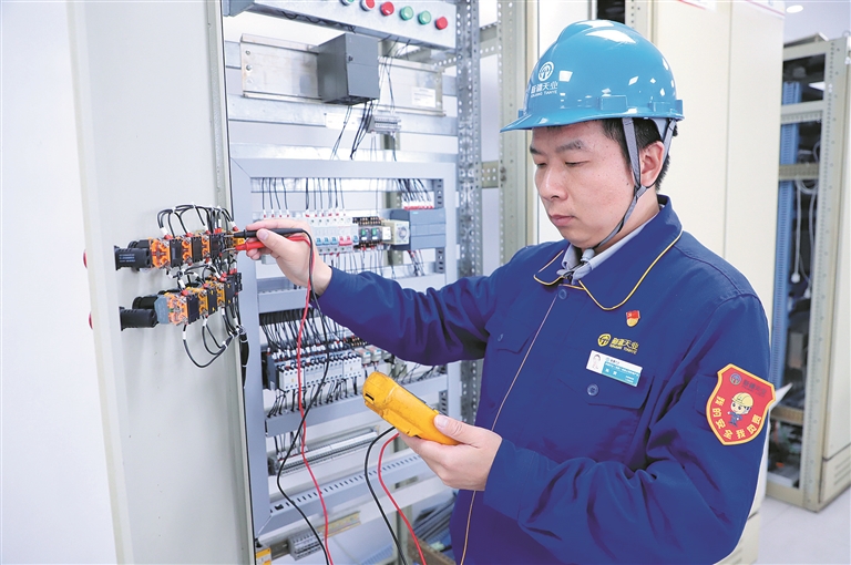 5月10日,陈赞在检查设备,为设备良好运行排忧解难。马小峰 摄