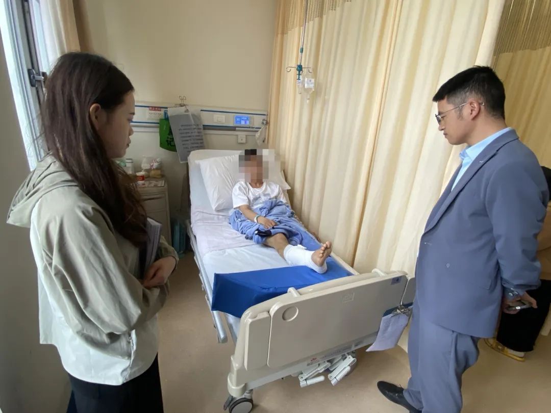 据了解,外卖配送员段某在送外卖途中与出租车相撞,导致右腿粉碎性骨折,目前在医院接受治疗,双方赔偿存在争议,情急之下,段某联系上了工会驿站的法律服务志愿者。由于外卖小哥在医院住院,外出不便。核实情况后,盘龙区总工会第一时间采取行动,安排工作人员、专职律师、驿站志愿者一起前往医院看望小哥,同时上门提供交通事故赔偿、伤残认定、医疗费用追讨等咨询服务及法律援助。同时通过工会驿站内配置的“工会法律智能e+”平台,委派一名专门处理交通事故赔偿的援助律师,进行密切跟进和无缝对接,详细了解具体情况,罗列需要准备的具体材料清单,出具咨询意见书。目前,虽然具体的赔偿工作还在按照规定进行协商中,但通过前期的法律援助和一系列的贴心服务,让外卖小哥真切感受到了工会“娘家人”的温暖。
