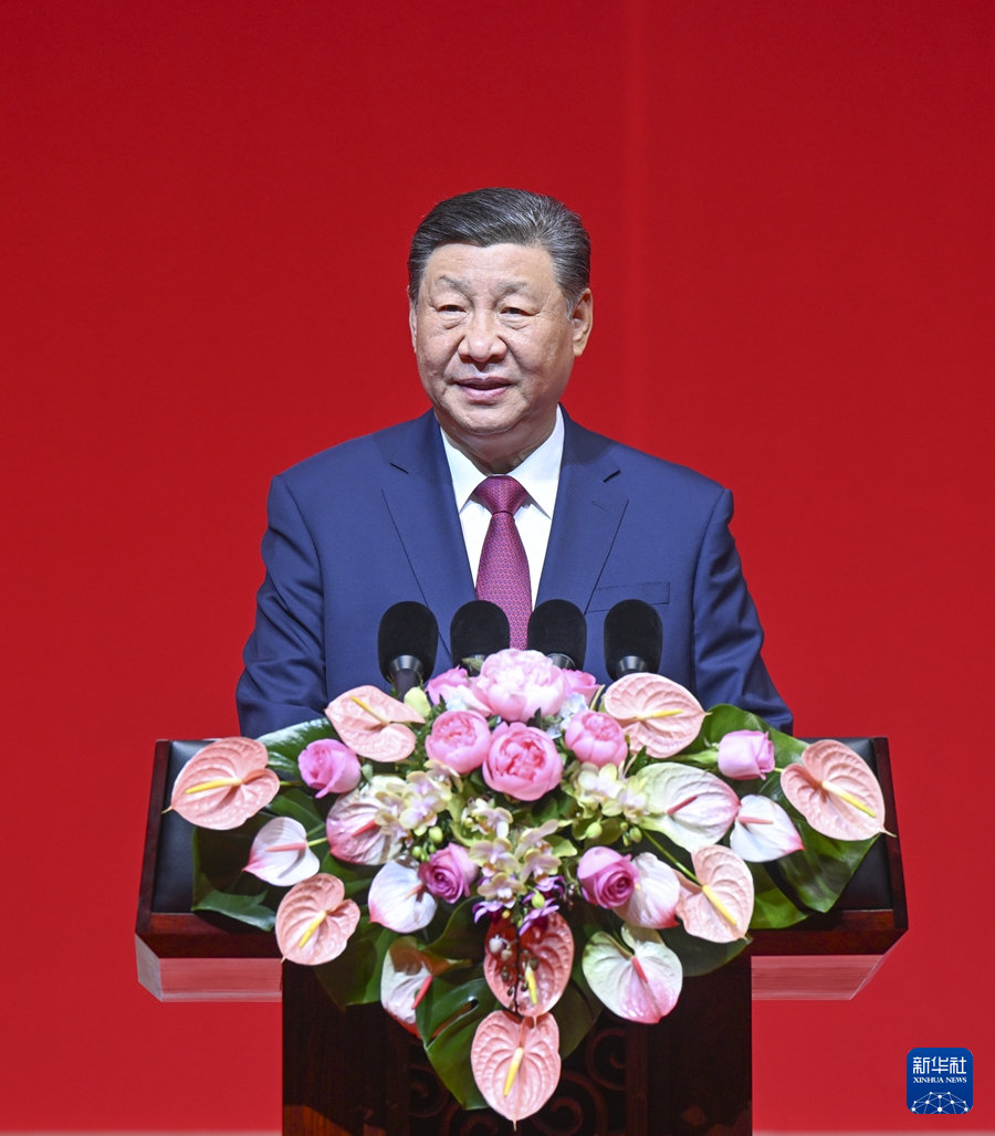 5月16日下午,国家主席习近平和俄罗斯总统普京在北京国家大剧院共同出席“中俄文化年”开幕式暨庆祝中俄建交75周年专场音乐会并致辞。这是习近平发表致辞。新华社记者 张领 摄