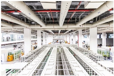 新华三未来工厂一角。这个智能工厂集合了5G、AI、边缘计算、工业互联网等前沿数字技术,是新华三集团在智造领域的实践样板。