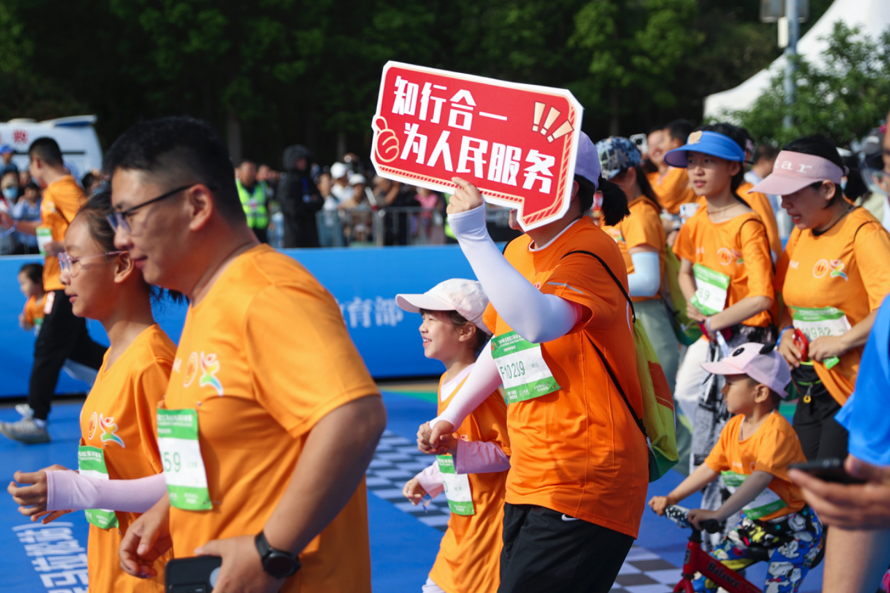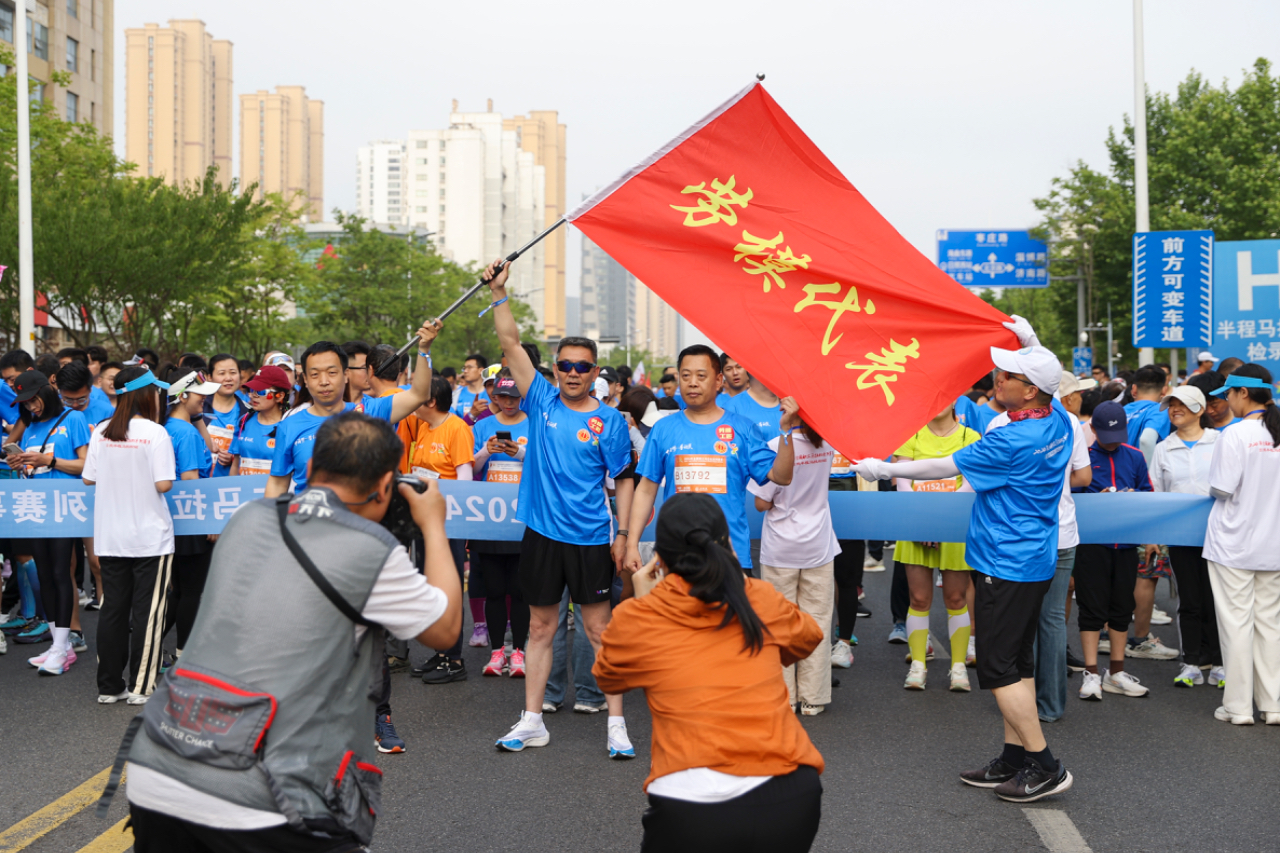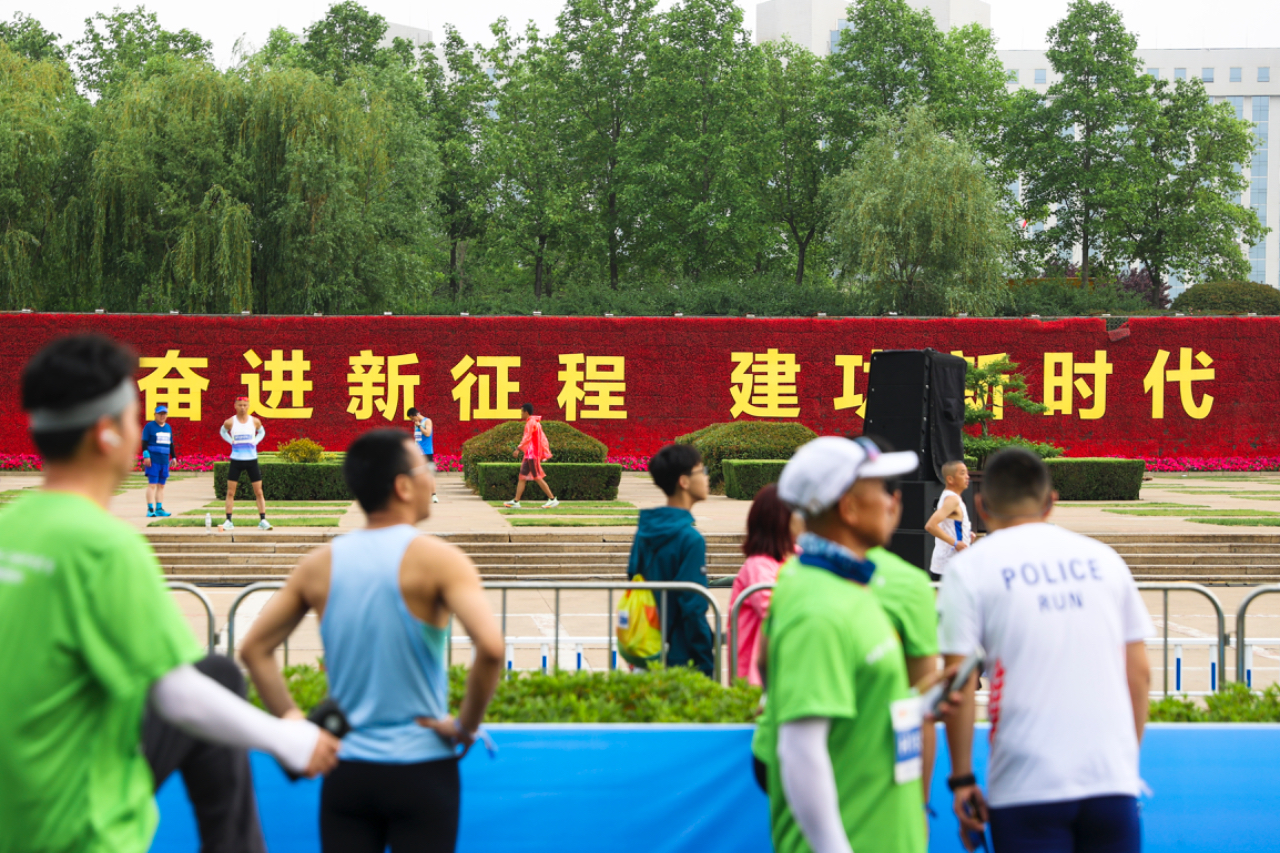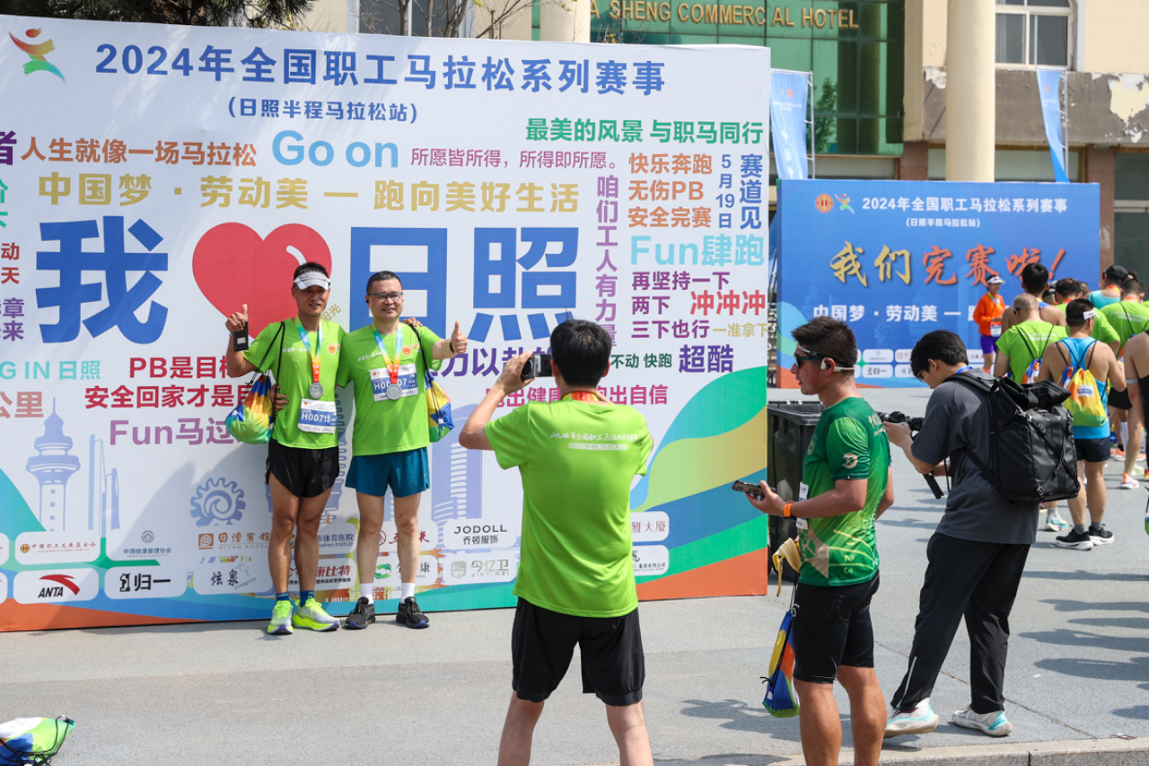 5月19日,山东日照,2024年全国职工马拉松系列赛事(日照半程马拉松站)比赛现场。