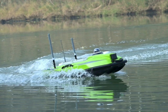 无人测量船正在河面行驶。(主办方供图 敬凡摄)