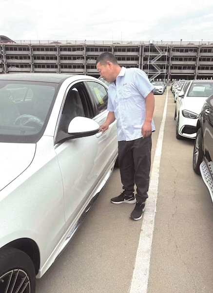 5月24日一早,记者来到安达物流公司丰田泰达车场商品车场内,只见韩学军正在进行工作检查。