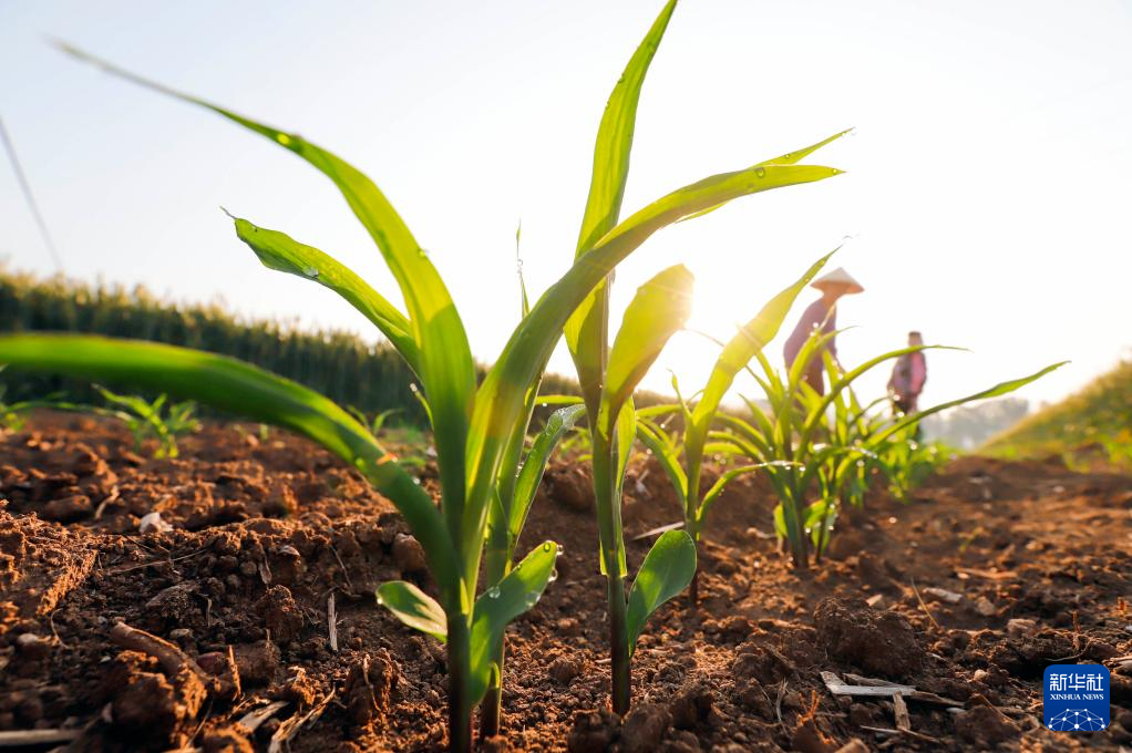 6月4日,河北省遵化市刘备寨乡泉水头村农民在管护玉米幼苗。新华社发(刘满仓 摄)