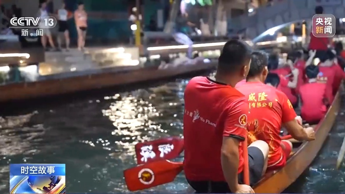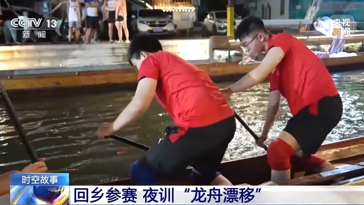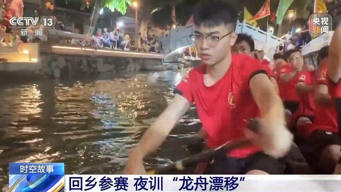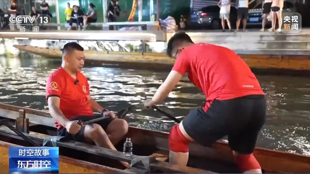 老舵手在船头、船尾关键的位置把住方向,年轻人在船中位置一边出力,一边抬头观摩——这项最早可以追溯到明代的龙舟传统,就这样在一条船上,在一次次夜训里,又完成了一代传承。