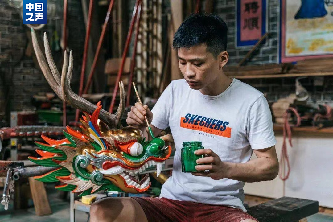 张伟潮是广东广州黄埔区非遗项目“龙舟龙头、龙尾制作技艺”代表性传承人,扎根龙头龙尾创作十多年,制作的龙头登上了北京冬奥会的舞台。对他来说,这不仅是一项工作,更是一种文化的传承。