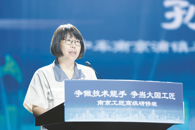 近日,南京工匠学院“争做技术能手 争当大国工匠”高级研修班开班仪式在南京工业职业技术大学举行。该校600名师生与70名南京工匠齐聚一堂,以青春碰撞匠心,以匠心引领前行。活动现场,全国人大代表、全国劳动模范、中国中车首席技能专家孙景南作为南京工匠代表,与学生进行面对面交流,分享她对工匠精神的理解——“在专业领域对自己‘斤斤计较’”,并鼓励和号召青年学生争做技术能手,争当大国工匠,为南京发展新质生产力建功立业。与会者反响热烈,纷纷表示要精研技能再出发,持续走好以技成才、以技报国之路。