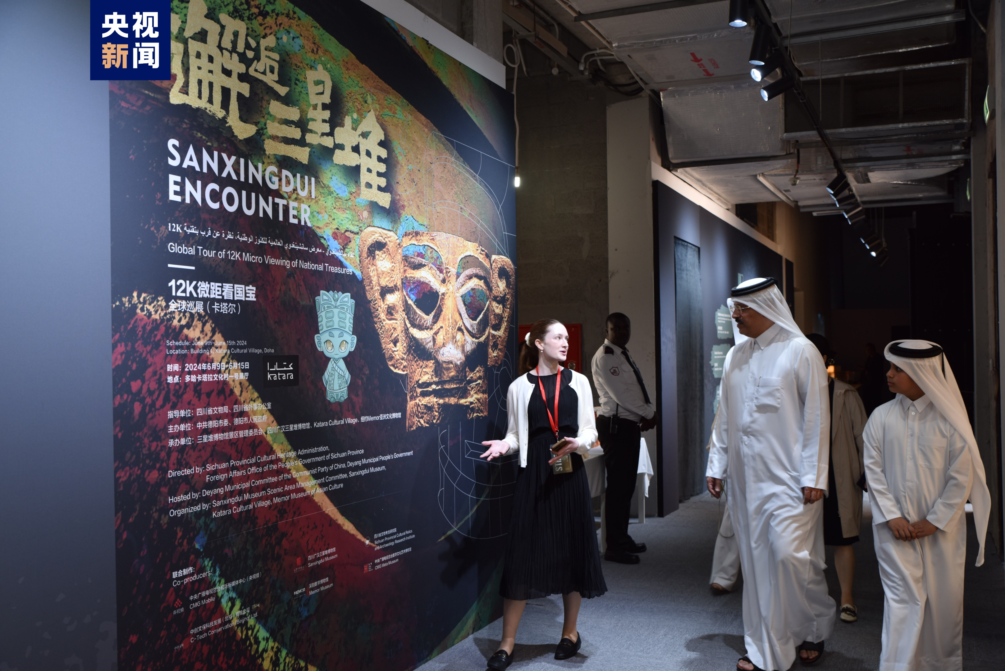 当地时间2024年6月9日,由三星堆博物馆和卡塔拉文化中心联合承办,中央广播电视总台“央博”数字文化艺术博物馆联合制作的“邂逅三星堆——12K微距看国宝”全球巡展在卡塔尔多哈顺利开幕。卡塔尔站是本次展览全球巡展的首站。