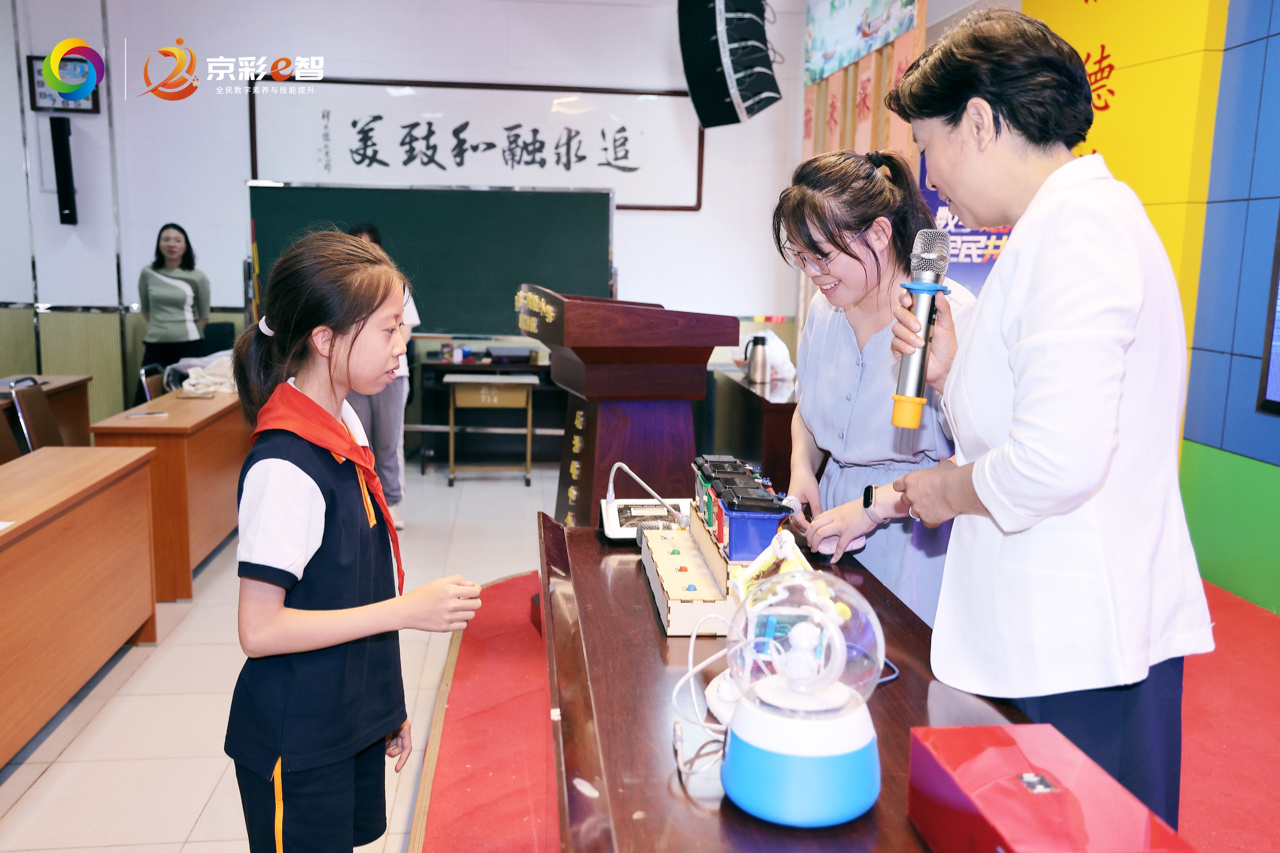 “同学们,你们心中未来的老师是什么样子的?你期望的未来学习是什么样子的?”“我们每个人都在线上学习!”“机器人给我们讲课”“我们自己成为知识的研究者。”在顺义区后沙峪中心小学,首都师范大学教育学院副院长乔爱玲教授以“让每个孩子都拥有自己的AI伙伴”为主题,与同学们对未来学习展开了一场脑洞大开的畅想。而这些想象,在乔爱玲教授的案例分享中有些已经成为现实,比如Pad班、翻转课堂等都是未来教育中教学的积极尝试。她表示,随着数字技术的进步,教育机器人在未来的教育教学中,也将发挥巨大作用,同学们期待的未来学习方式终将实现。乔爱玲教授现场还与学生们进行了语音控制开关灯、多功能盒、音乐盒等智能硬件产品互动,在参与中触摸数字技术的最前沿。