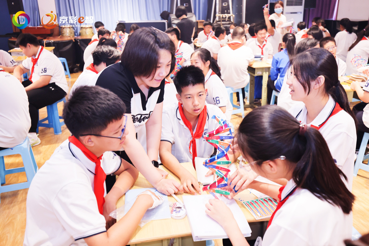 来自中国科学院北京基因组研究所(国家生物信息中心)李玥莹研究员以“组成生命的砖块:细胞与基因”为主题,从生命的基本构成单位开始,为北京市第十八中学的学生深入浅出地介绍了未来基因组学对健康医疗可能带来的影响。“基因编辑可以应用于生活中哪些方面?”“进行基因的研究需要考虑公众的道德评判吗?”讲座后,同学们变身一个个热爱科学的小探索家,与专家进行了一场科普探讨。四种颜色的遗传密码ATCG、一把结构柱,看似简单的几样物品,通过简单的制作拼接,就能将抽象的DNA双螺旋具象化组成模型。李玥莹带领学生们制作DNA双螺旋模型,从中学习“写满遗传密码的DNA是独一无二”的概念。一次近距离的接触,让基因组学这个高大上的学科不再遥远。