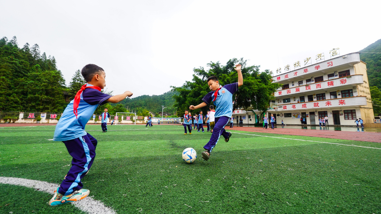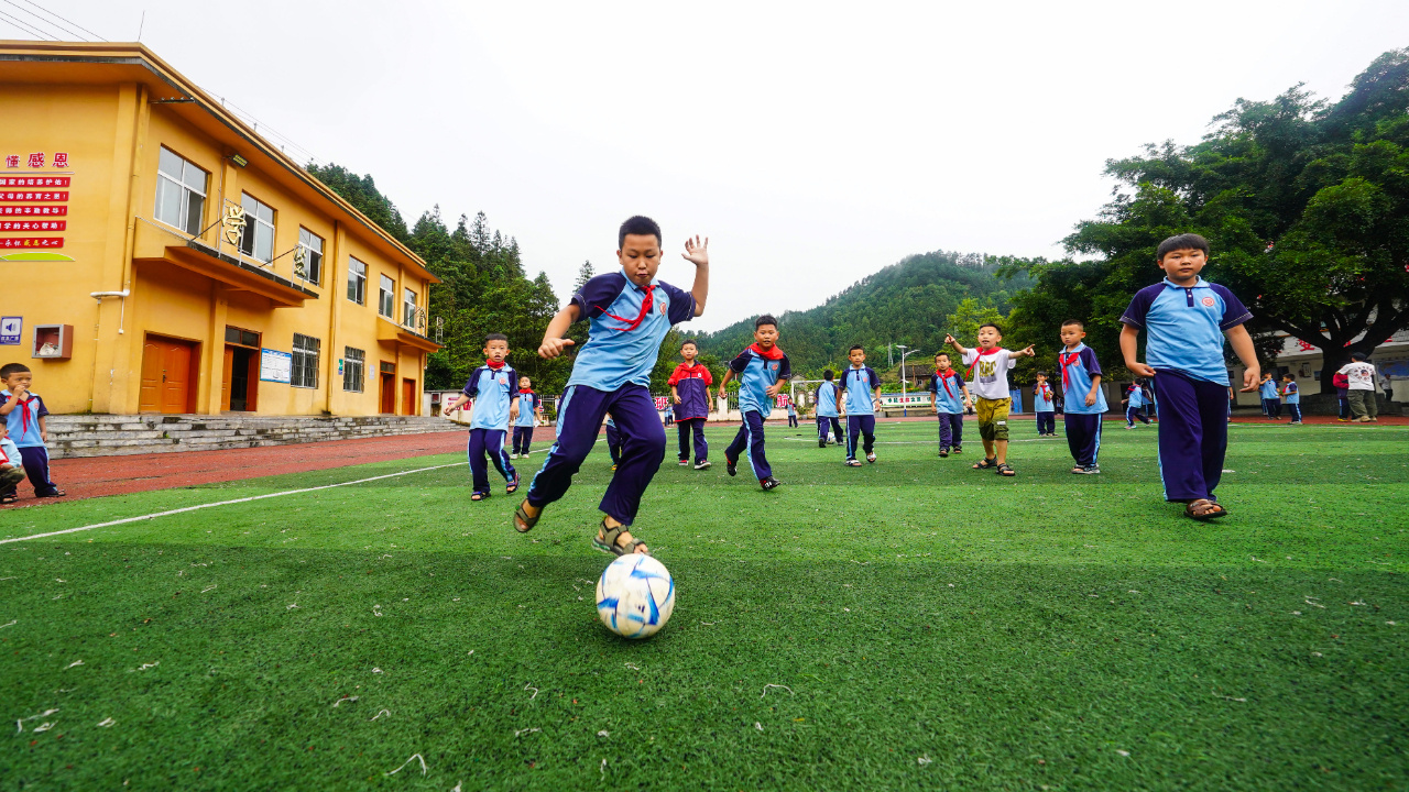 6月12日,在贵州省黔东南苗族侗族自治州榕江县定威水族乡中心小学足球场,学生在开展足球训练。近年来,贵州省黔东南苗族侗族自治州榕江县坚持足球教育从娃娃抓起,积极推进足球教育进校园、进课堂活动,让孩子们在积极参与足球、爱上足球、乐享足球运动的同时,进一步深化“体教融合”,促进校园足球蓬勃发展。