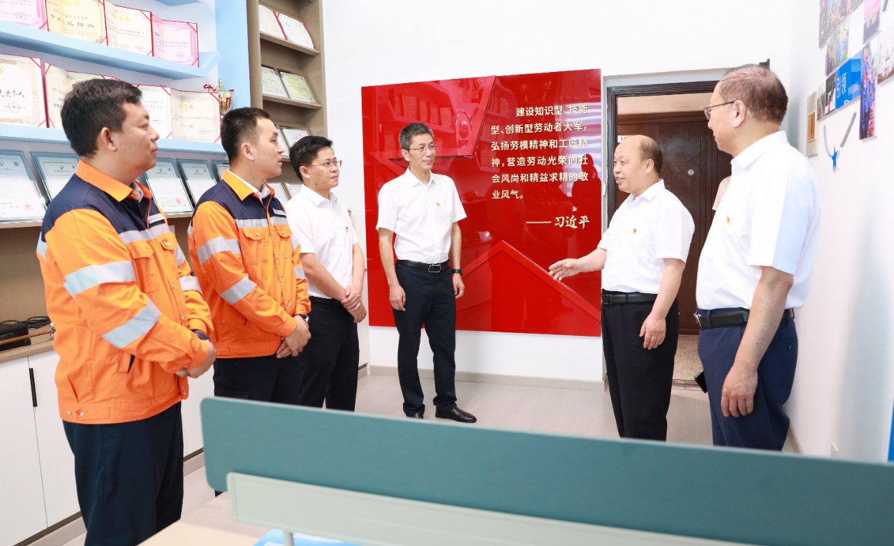 6月14日,中铁电气化局运管公司上海维管处邀请中华全国总工会副主席(兼)、全国劳动模范巨晓林在中铁电气化局运管公司徐州维管段开展了技能大师工作室分室揭牌暨员工创新工作座谈会系列活动。在参观工作室成果过程中,巨晓林就轨面标准线自动标画仪器、绝缘力矩紧固工具等接触网检修工器具与中国中铁模范师徒王伟、乜长水进行了交流指导,他勉励一线员工积极研发“省时、省力、省材料,保质、保量、保安全”的创新成果。(华茂林 廖娜 陈玉清)