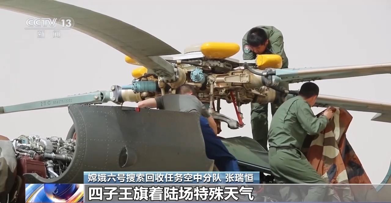 嫦娥六号搜索回收任务空中分队 张瑞恒:一是我们着重进行了归零搜索方法和返回器外吊挂运输等内容的演练。二是我们针对四子王旗着陆场特殊天气和我们返回器返回偏差等突发情况进行了演练,我们能够保证任何情况下都能完成任务。