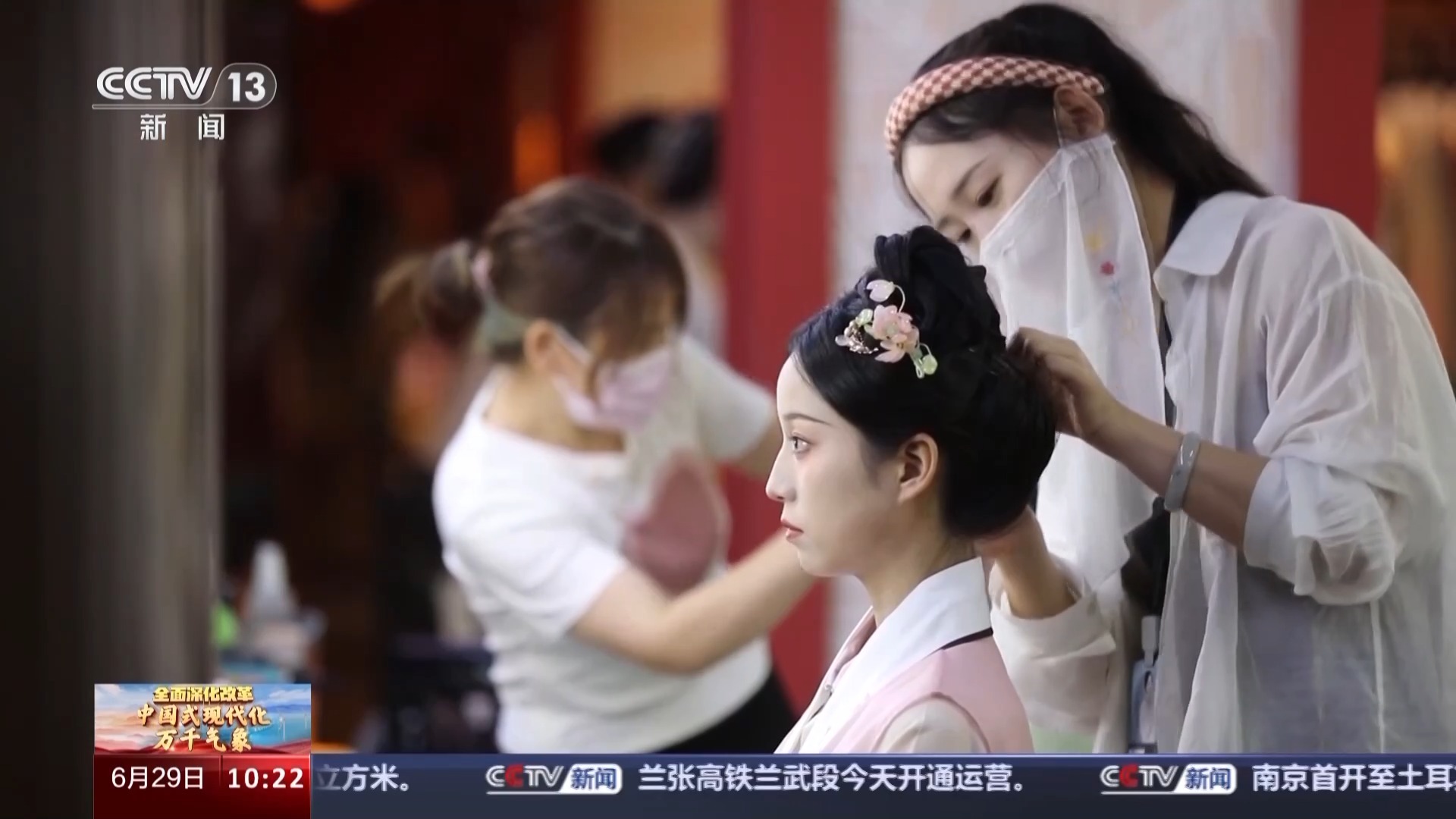 除了妆造师,国风服饰的火热还催生了像跟拍师、簪花制作师等等新兴职业,古城里,登记在册的摄影师从之前的几十名,增加到了800多名。