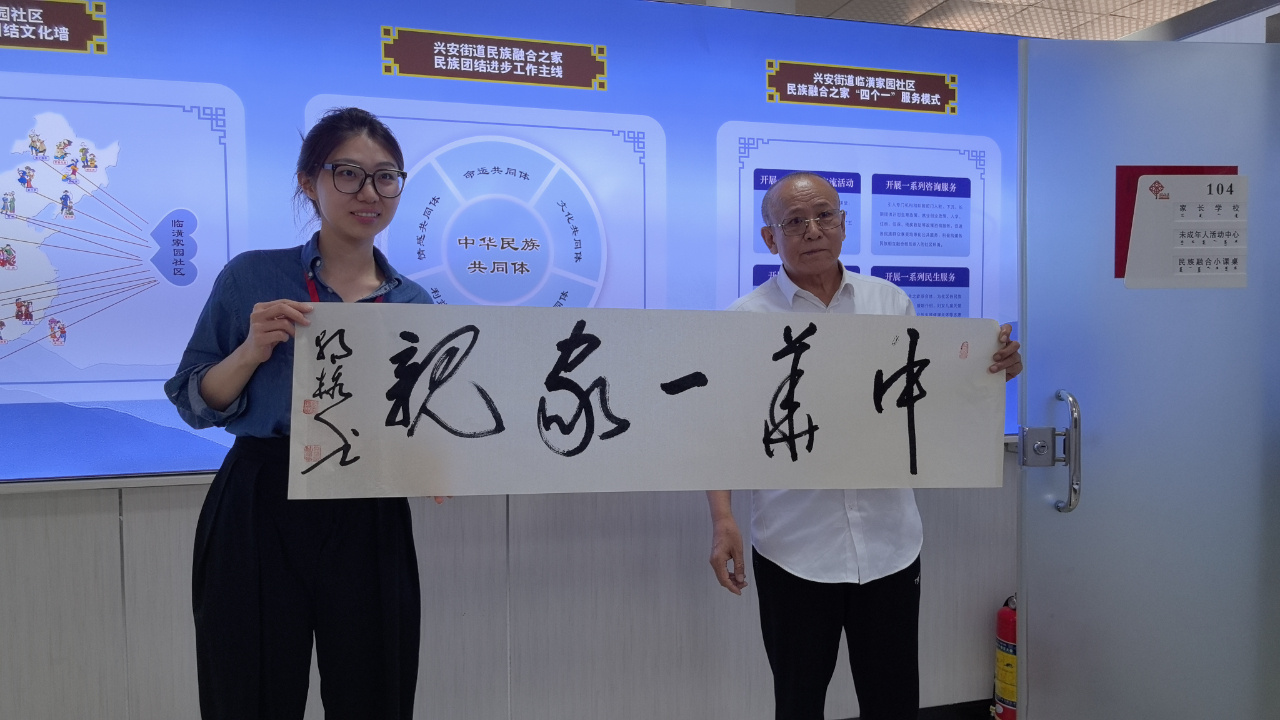 采访中,朝格用毛笔写下了“中华民族一家亲”的书法赠送给记者们。一幅幅书法饱含着各民族同胞的真情厚意和美好希望,这些真挚和朴素的情感激励着居民共同进步,也让这多民族朝夕相处的一方天地,成为更加和谐团结的“民族融合之家”。