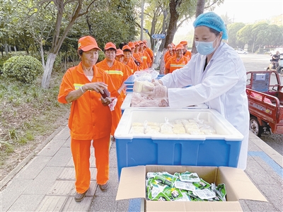 “以前在工厂打工,没有吃早餐的习惯。现在每天固定时间吃早餐,身体比以前好了,干活更有劲了。”环卫工人应桂珠说。