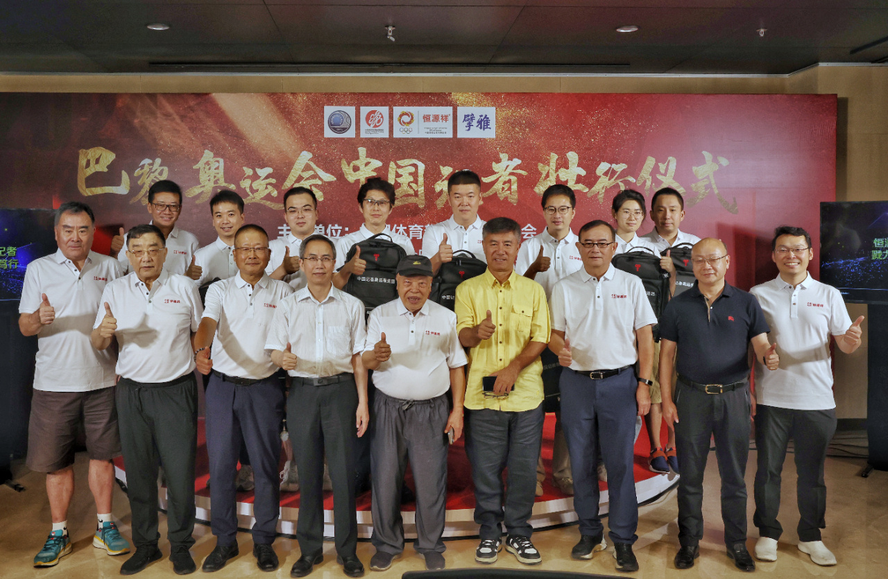 7月2日,出席壮行仪式的嘉宾和赴巴黎采访奥运会的记者一起合影。