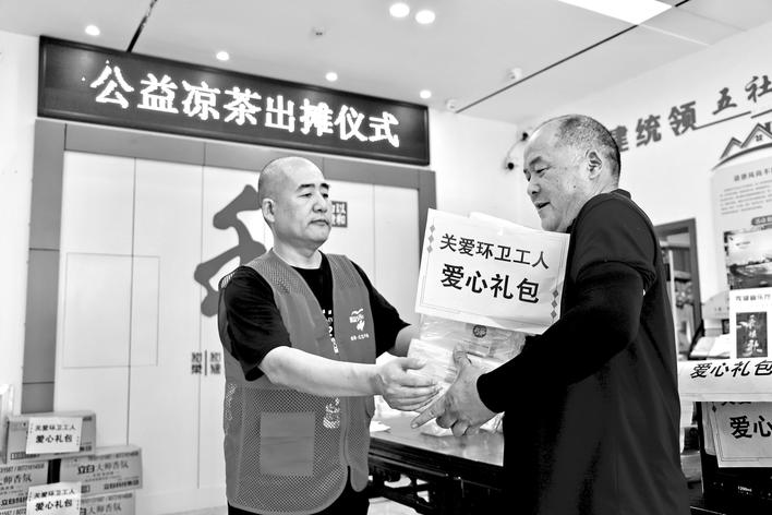 据了解,从2016年开始,新塍镇“爱心凉茶”志愿服务就已经开启。连续9年,每到盛夏,遍布大街小巷的免费凉茶等消暑饮品就成为新塍镇的一道动人风景线。如今,越来越多爱心商家加入这场爱心接力,给环卫工人赠送消暑礼包,并在自家店前设置纳凉点,为环卫工人提供免费茶水。
