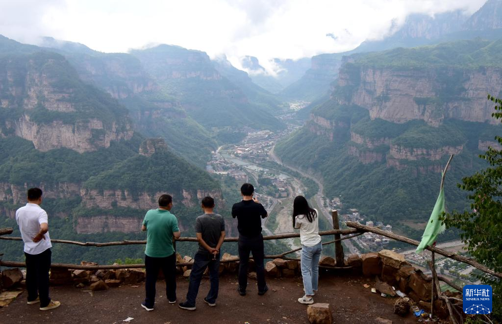 7月2日,游客在位于太行山深处的林州市石板岩镇一处观景平台游览。新华社记者 朱祥 摄