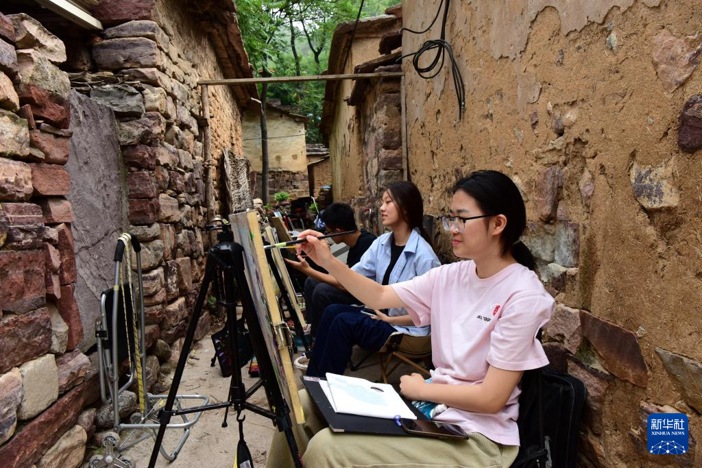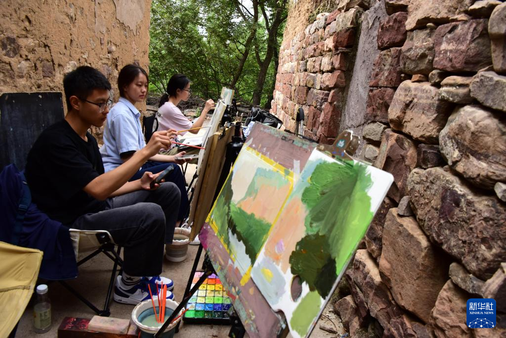 7月3日,来自河南郑州的学生在林州市石板岩镇写生。新华社记者 朱祥 摄